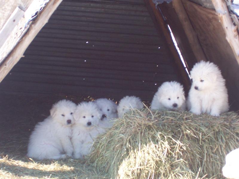 Six week old Maremma Sheepdog puppies enjoying the sun and the hay!